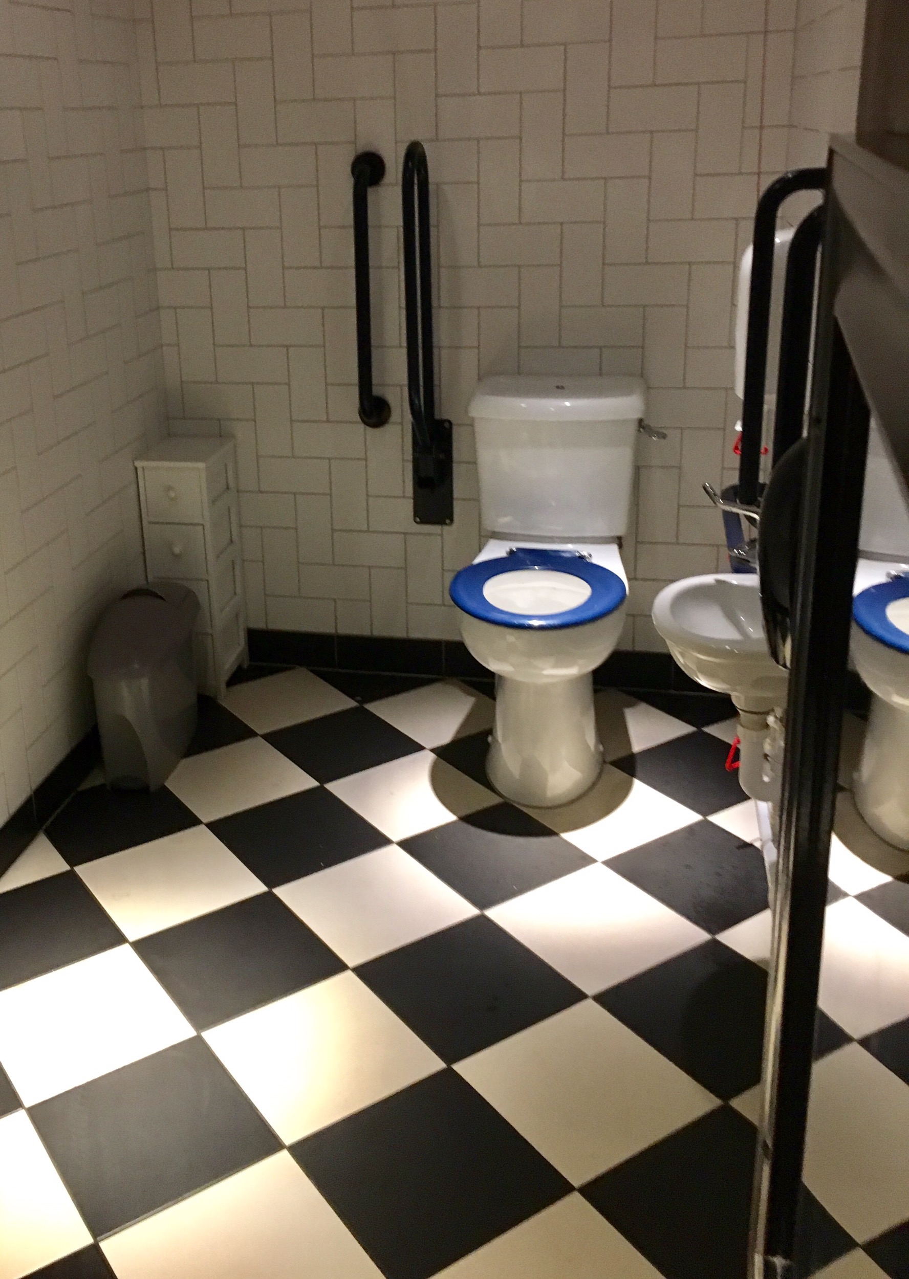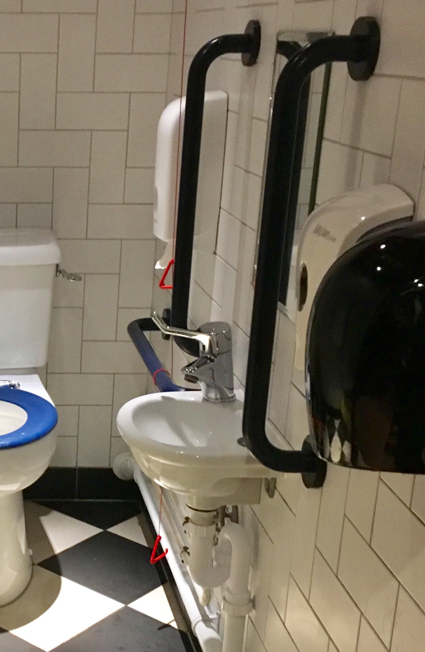 The red emergency cord was actually hanging to the floor beside the toilet. Why wouldn’t it be I hear you say? Well this is another rarity. I say this often enough but please if you see an emergency cord tied up, untie it, if it’s been cut short, report it. An emergency cord is there for that precise reason. An emergency! If somebody falls and is lying on the floor they need to be able to alarm for help. Nagging over.