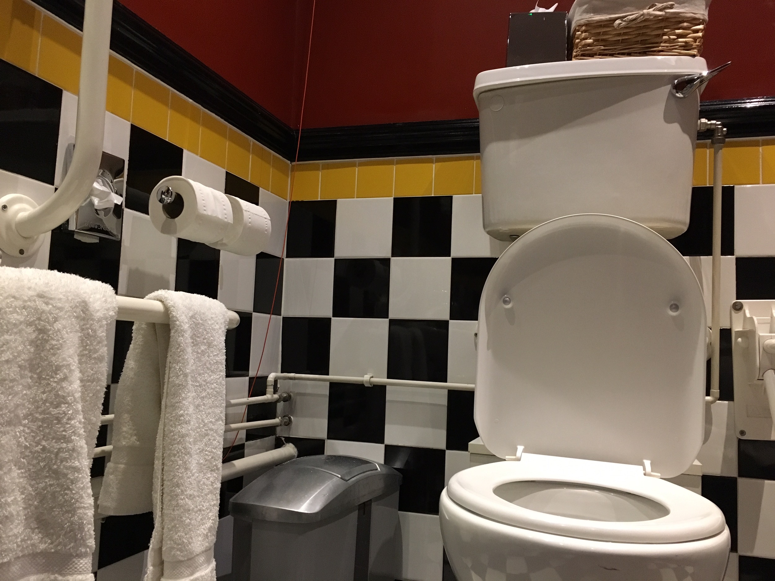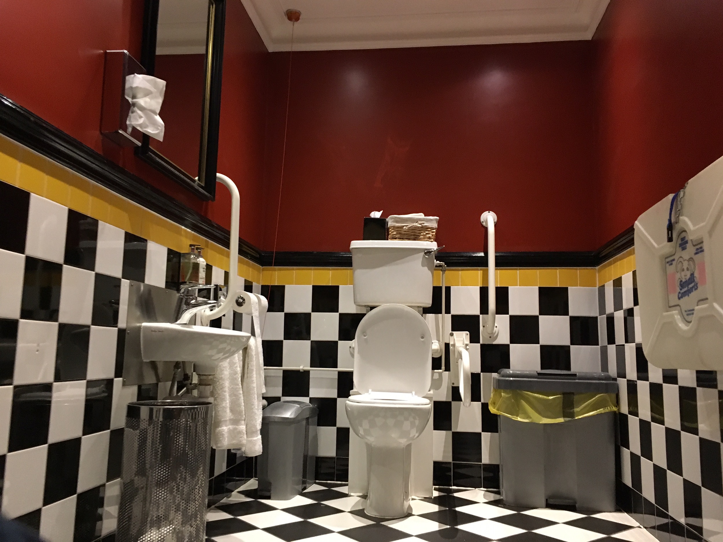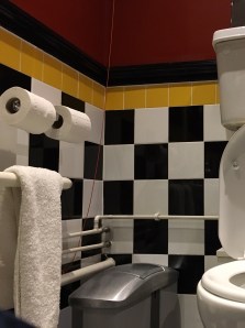 Anyway hook rant over, this accessible toilet was a little on the small size. Enough room for myself and PA, but no turning space, I’d have to exit in reverse.