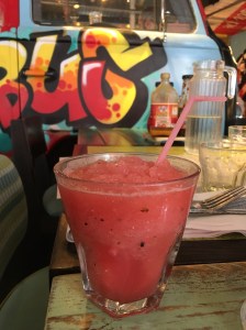 With just the right amount of time to give the menu a browse a cheery (but not cringe cheery) waitress appeared to take our drinks order. I had a Watermelon Crush, watermelon juice blended smooth with ice, it was yummy and refreshing and a bit like sophisticated Slush Puppie (with way less sugar!).