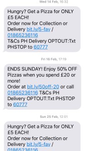Day 5 How do Pizza Hut even have my number? Three texts in under a week! They know. I swear they know.