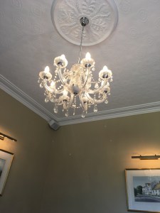 The room was grand with a fireplace, magnificent mirror and chandeliers. Spacious, yet cosy and warming.