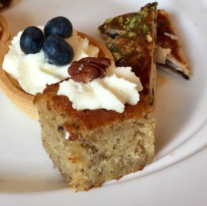 Although all perfectly tasty cakes I feel it was an odd bunch. The flavours didn’t compliment each other and the tier looked very dull for something served in the midst of spring. A bit of colour or more spring like flavours would have been nice.